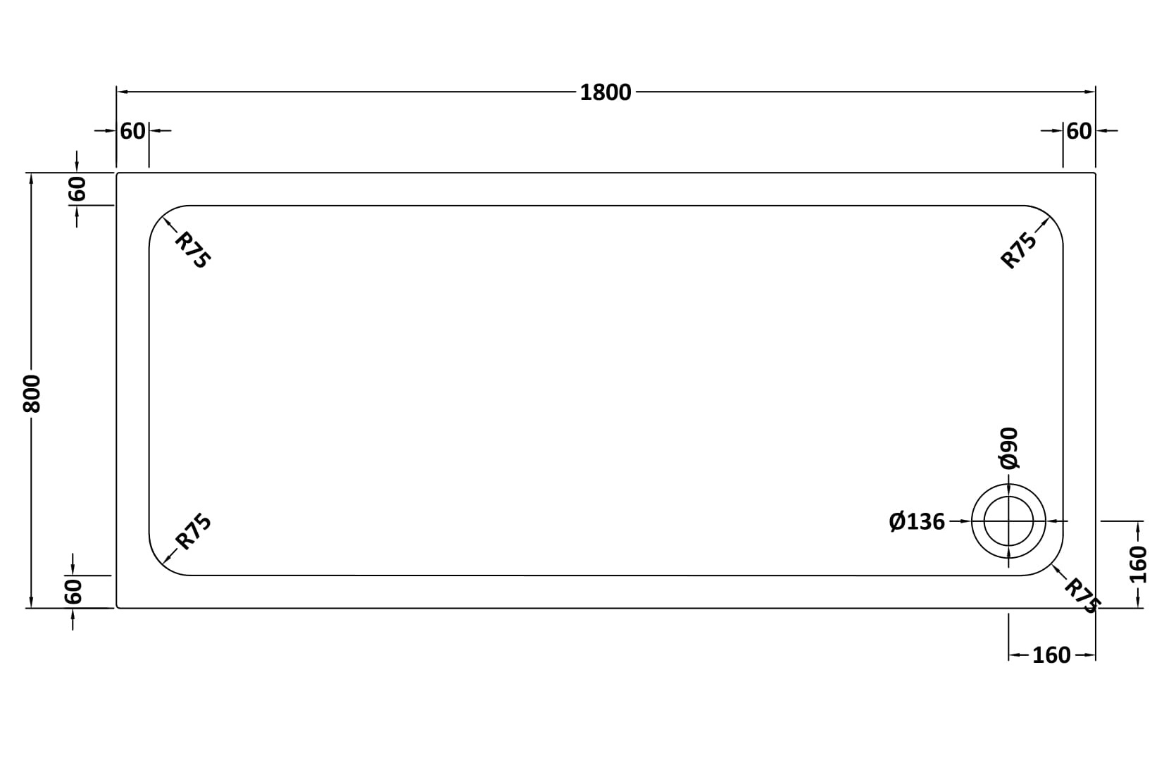 Hydro45 1800 x 800mm Anti Slip Rectangular Shower Tray