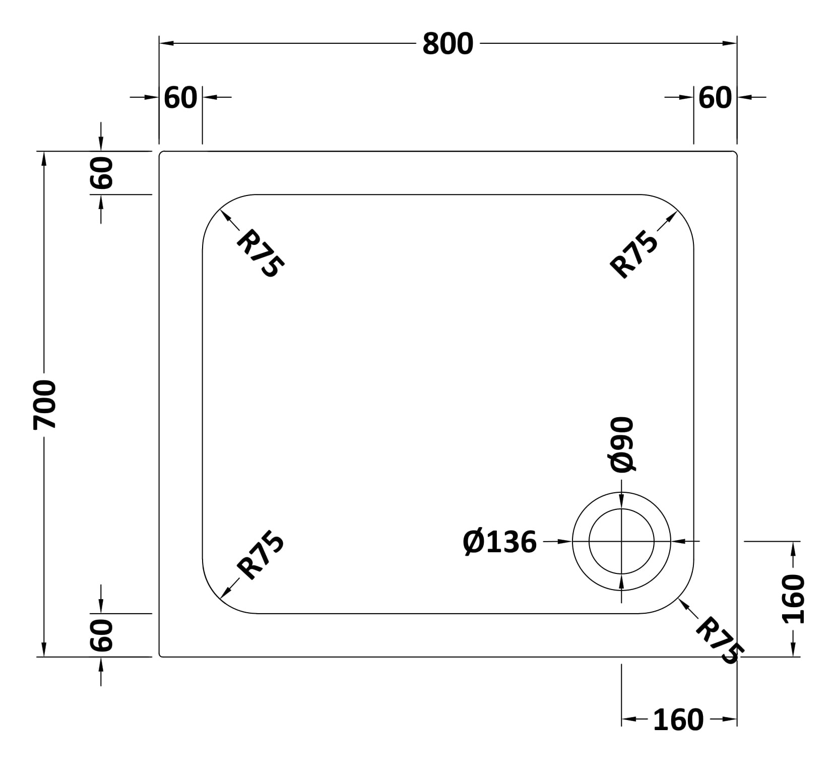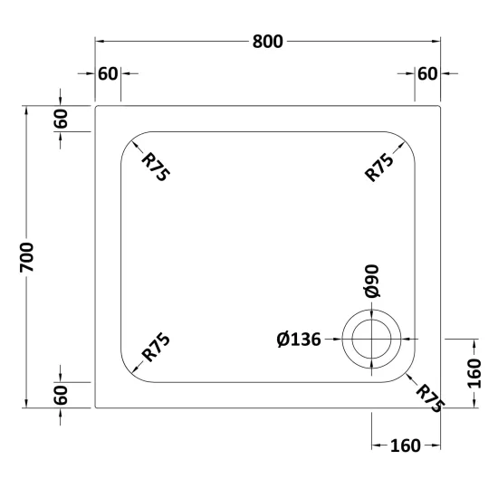 Hydro45 800 x 700mm Anti Slip Rectangular Shower Tray