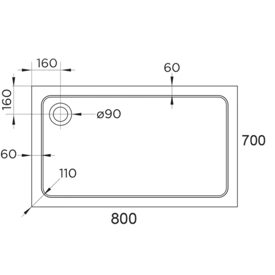 Hydro45 800 x 700mm Rectangular Shower Tray