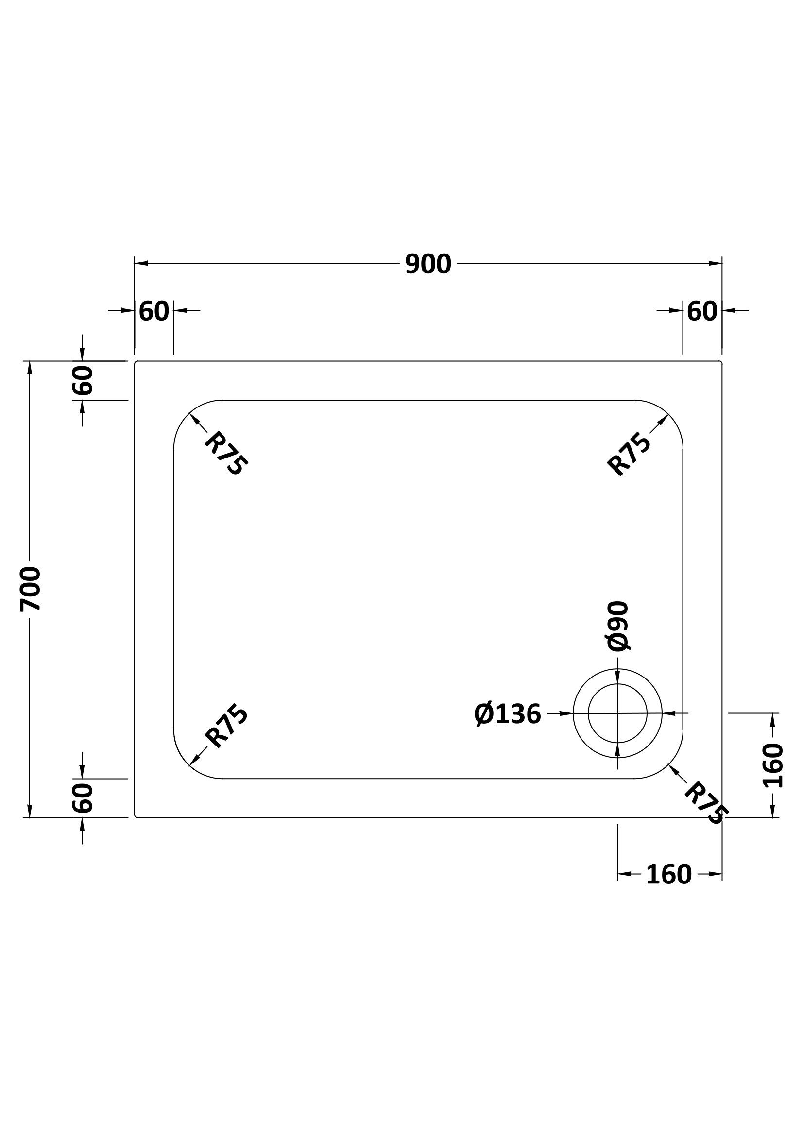 Hydro45 900 x 700mm White Rectangular Shower Tray