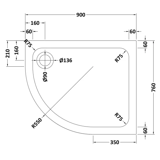 Hydro45 900 x 760mm White Offset Quad Left Hand Tray