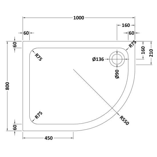 Quadrant Stone Shower Tray - 1000 x 800 - Right Hand