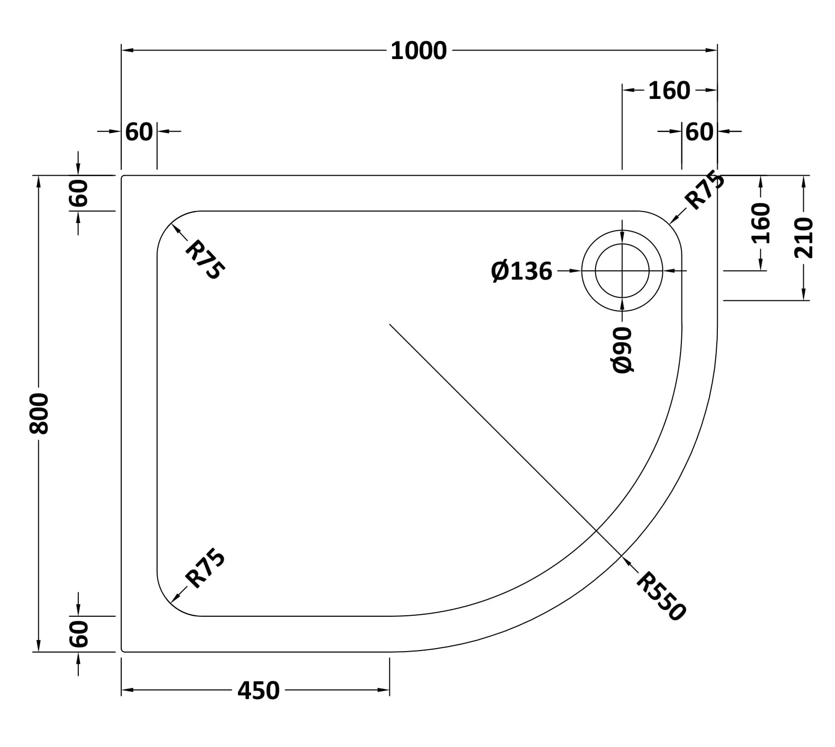 Quadrant Stone Shower Tray - 1000 x 800 - Right Hand