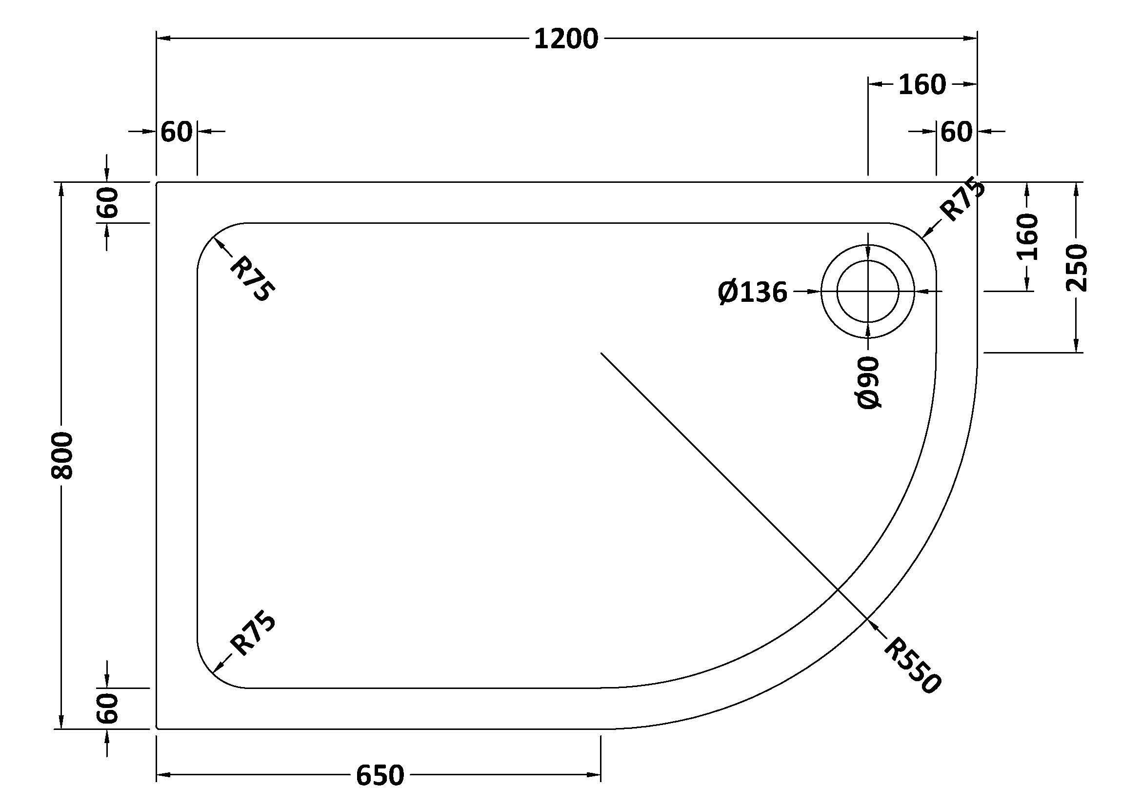 Quadrant Stone Shower Tray - 1200 x 800 - Right Hand