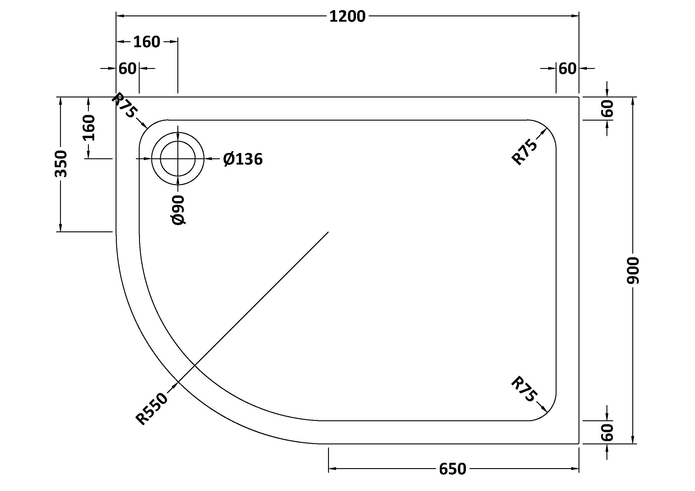 Quadrant Stone Shower Tray - 1200 x 900 - Left Hand