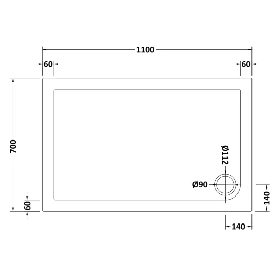 Rectangular Slimline Shower Tray 1100 x 700mm