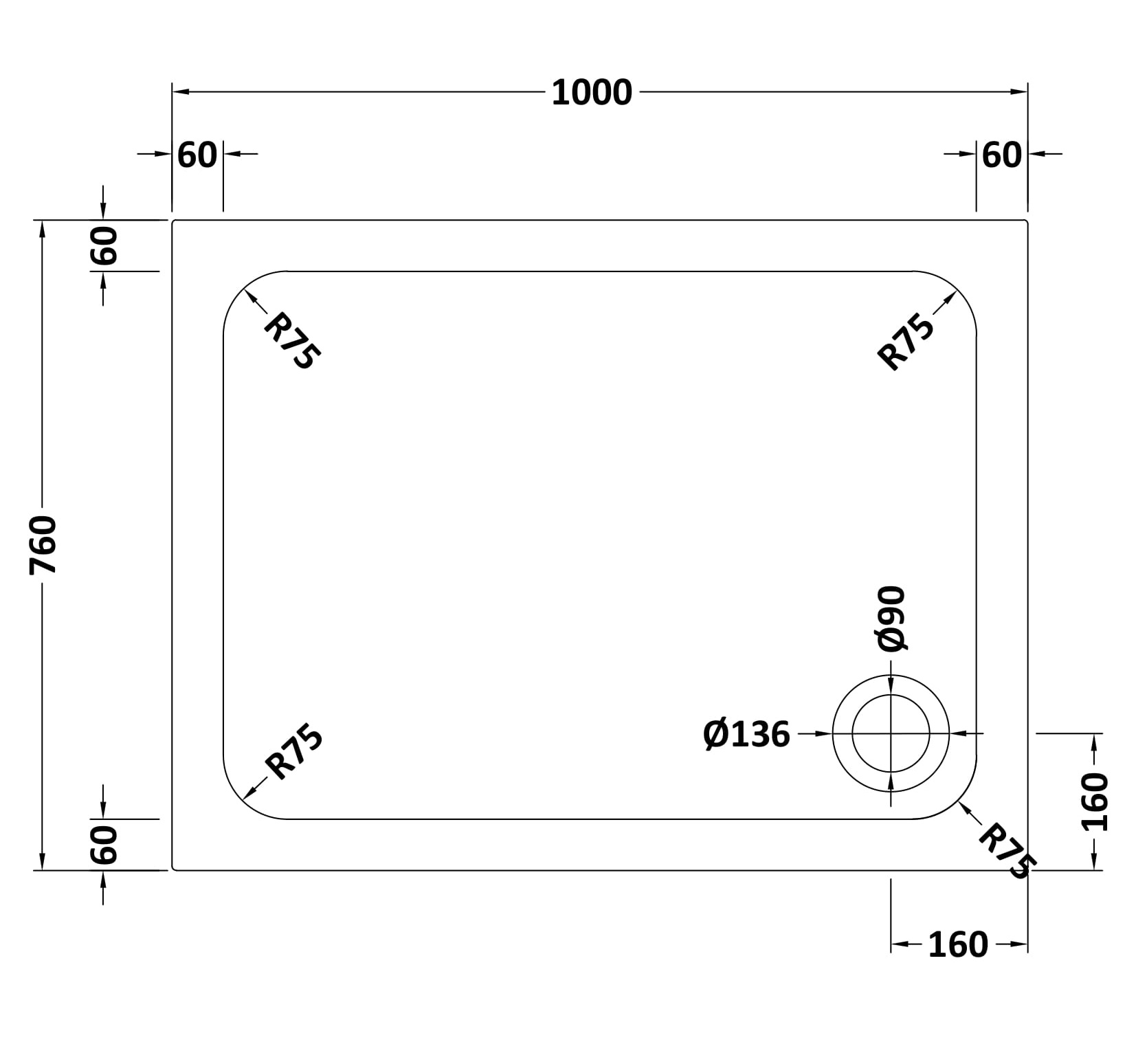 Rectangular Stone Shower Tray - 1000 x 760