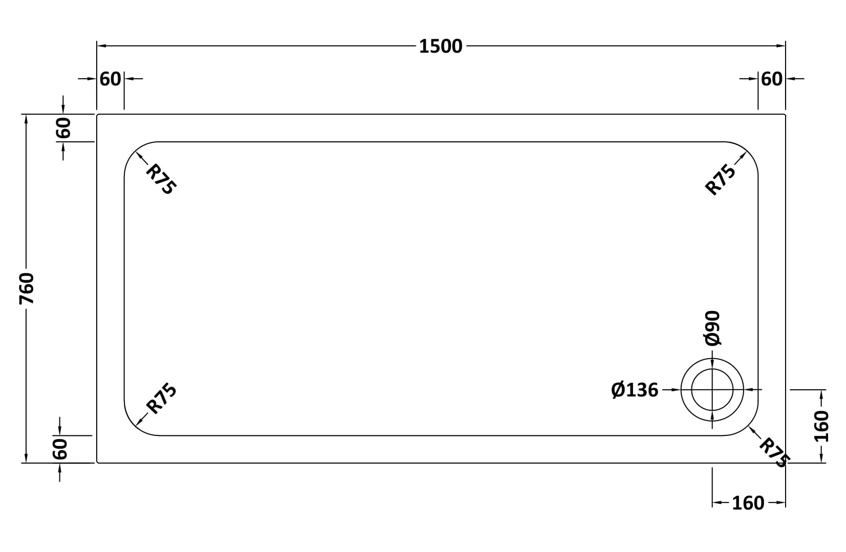 nuie choice Rectangular Stone Shower Tray - 1500 x 760 - Slate Grey
