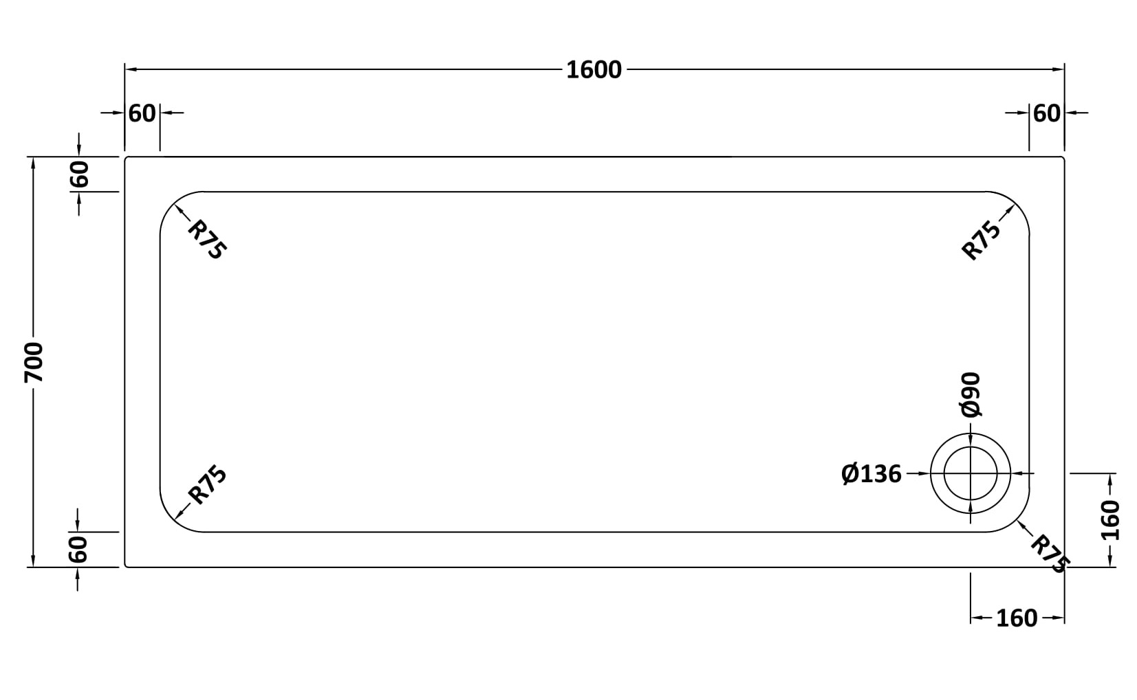 nuie choice Rectangular Stone Shower Tray - 1600 x 700- Slate Grey