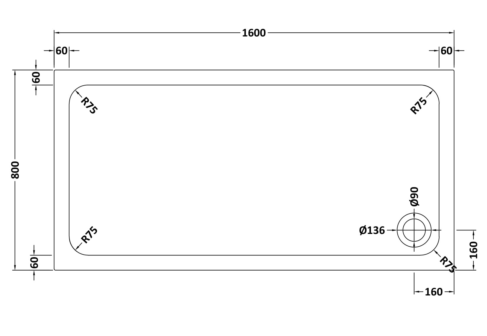 Rectangular Stone Shower Tray - 1600 x 800