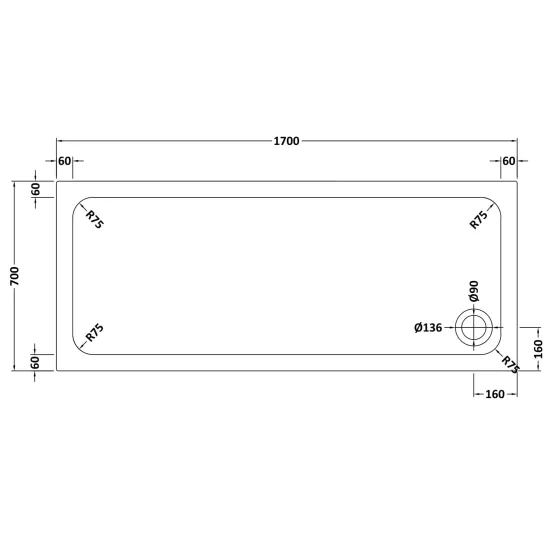 • The modern and sophisticated design provides a stable base, low profile for easy access into the showering area and features a discreet 90mm waste hole to allow water to be drained away from the standing area.