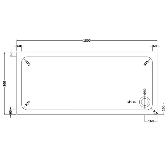 • The modern and sophisticated design provides a stable base, low profile for easy access into the showering area and features a discreet 90mm waste hole to allow water to be drained away from the standing area.