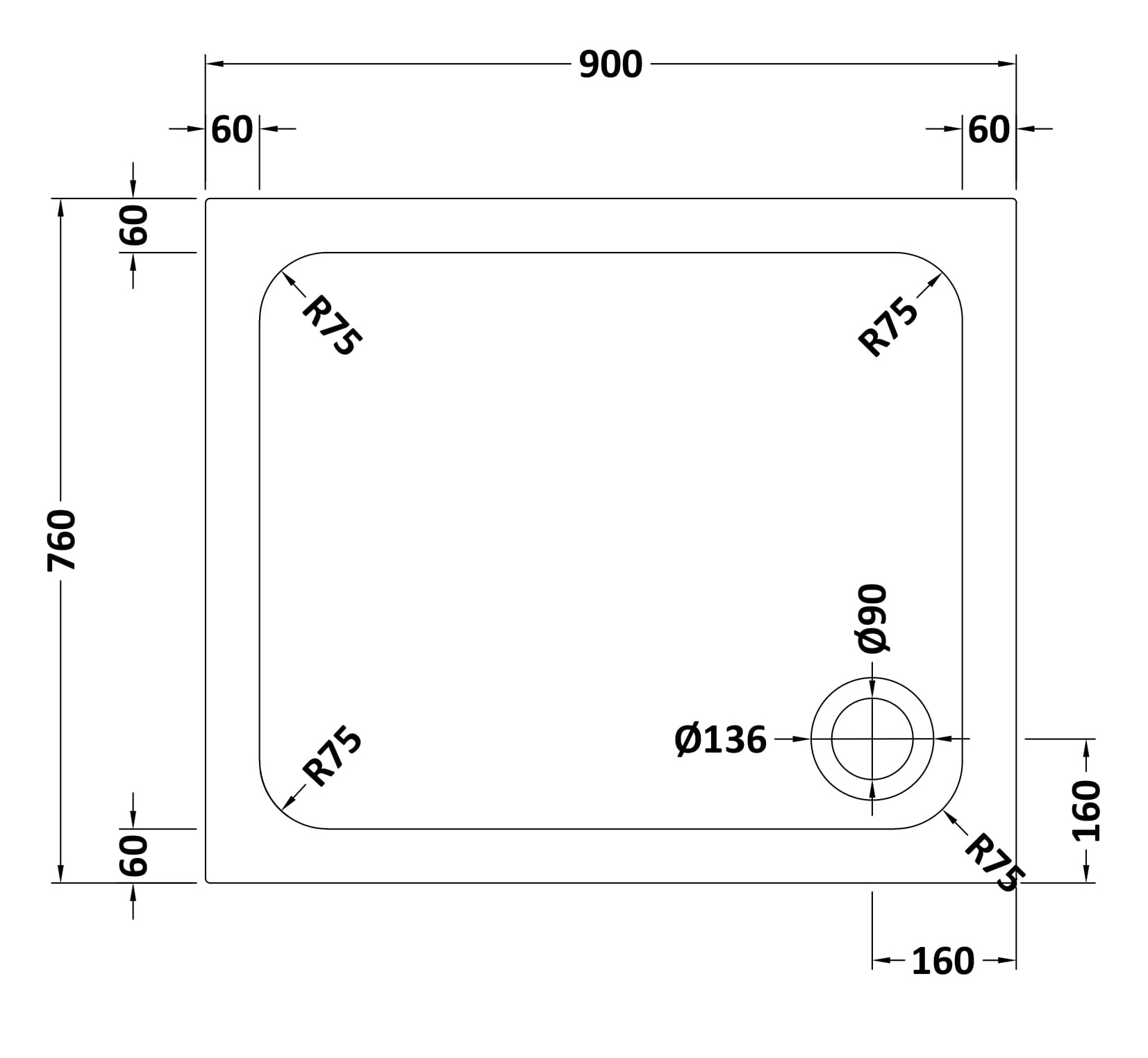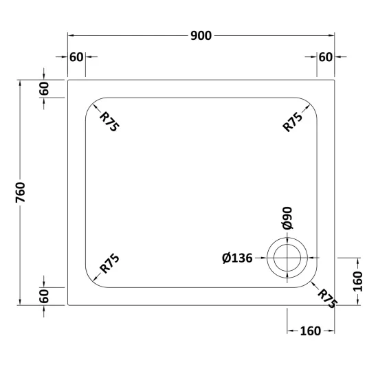 nuie choice Rectangular Stone Shower Tray - 900 x 760 - Slate Grey