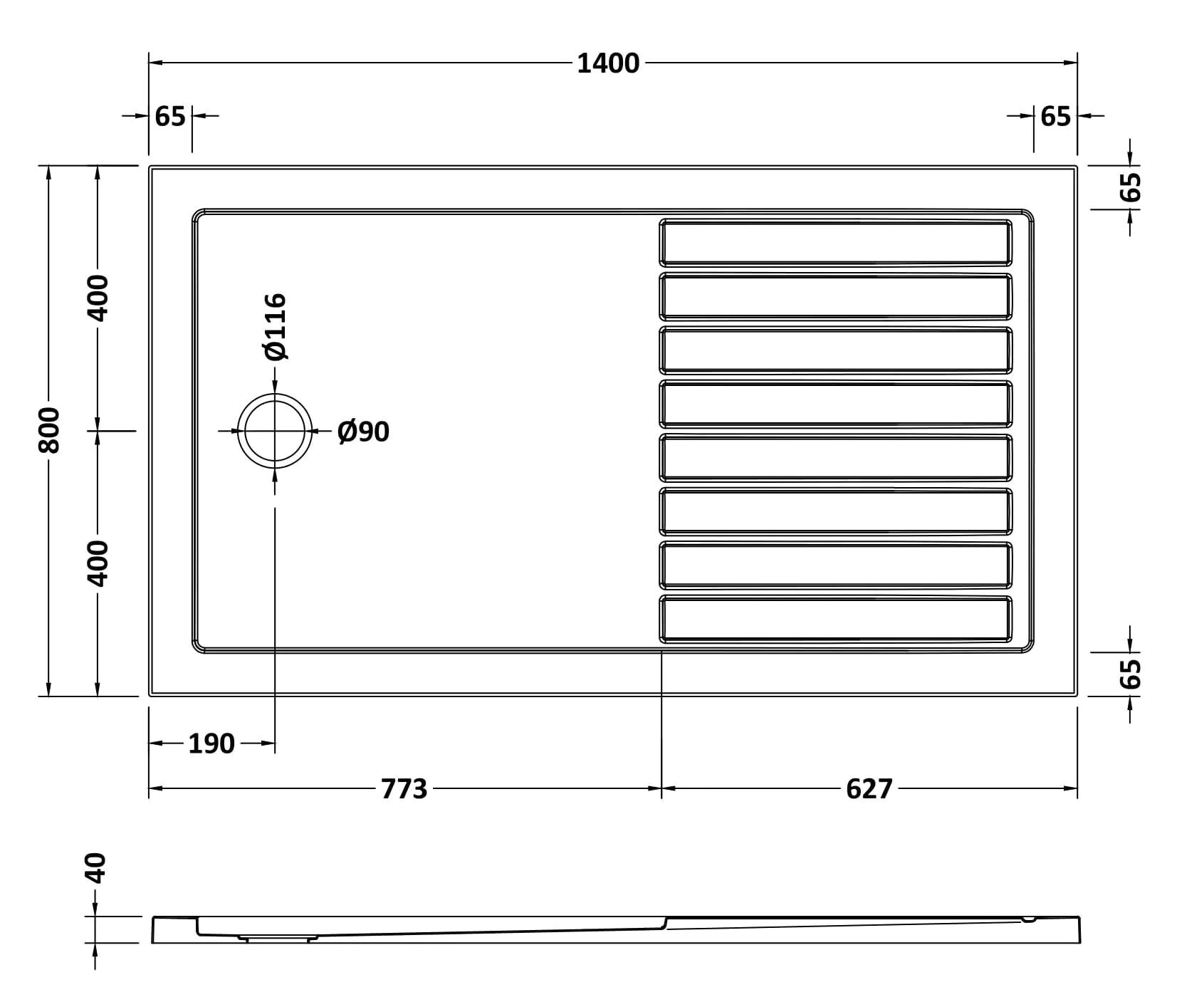 Rectangular Walk-In Slimline Shower Tray 1400 x 800mm