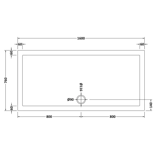 Slip Resistant Rectangular Slimline Shower Tray 1600 x 760mm
