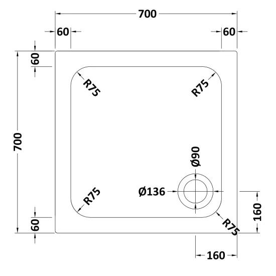 Square Stone Shower Tray - 700 x 700