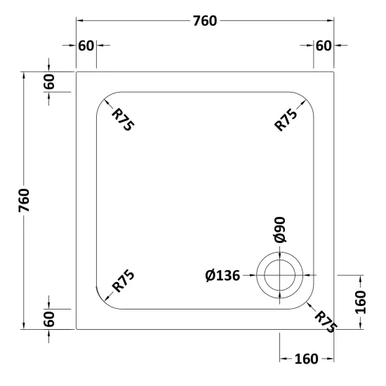 nuie choice Square Stone Shower Tray - 760 x 760 - White