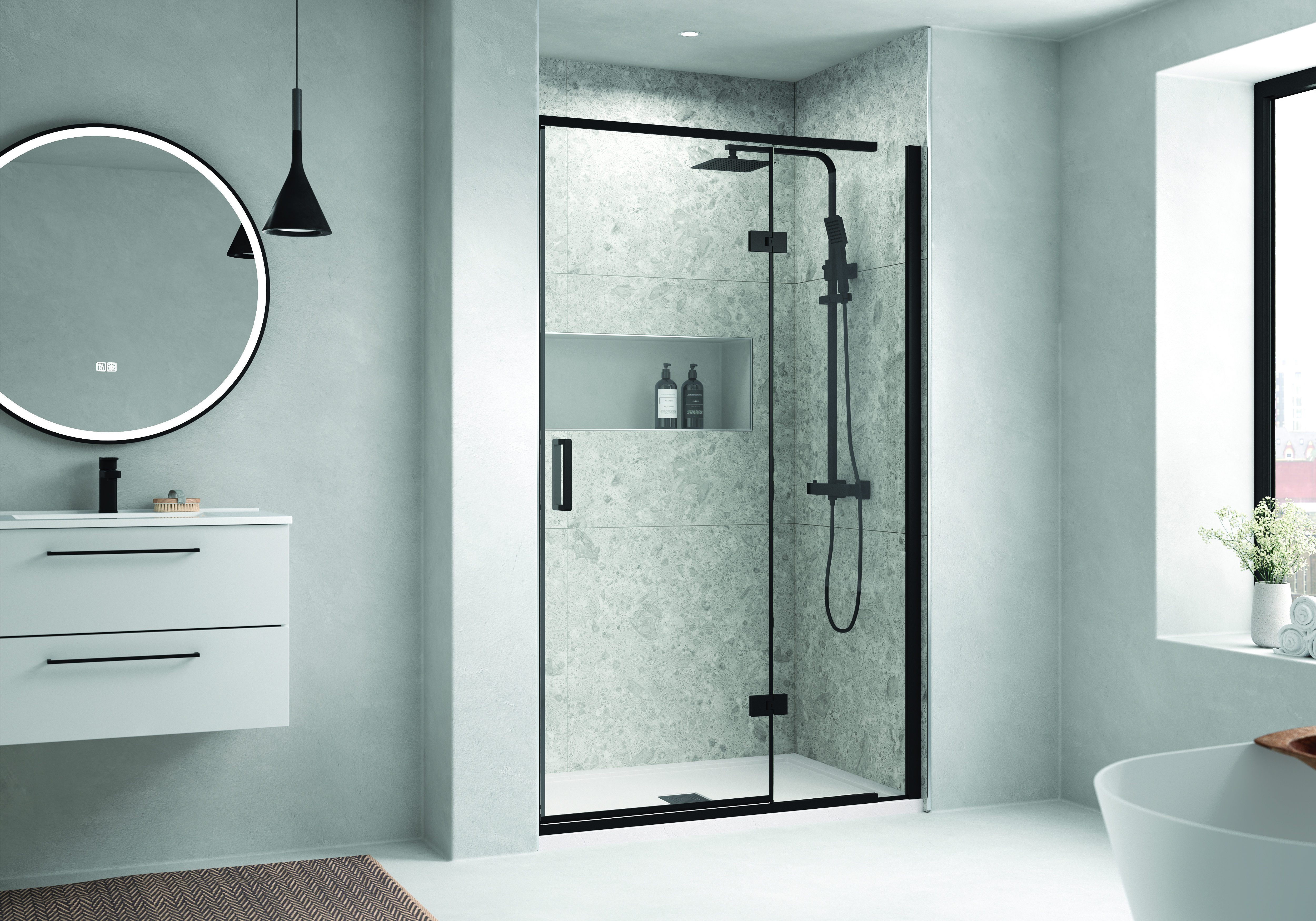 Explore our extensive range of stunning shower enclosures, durable trays, chic furniture and elegant brassware all designed to work together in seamless harmony.