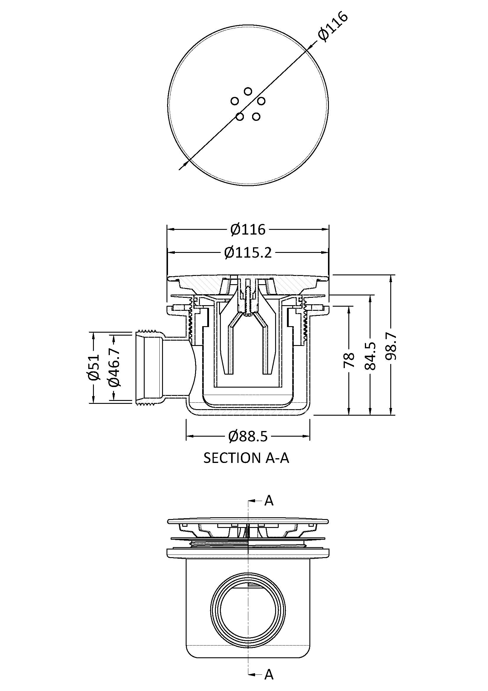 90mm Fast Flow Shower Waste - Brushed Bronze/White