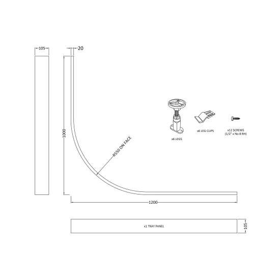 Hudson Reed 1200 x 900mm Curved Leg Set & Plinth Kit