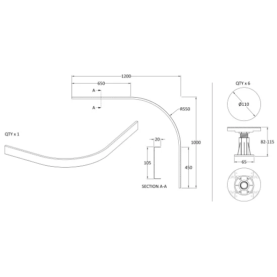 Hudson Reed 1100-1200mm Rectangular Tray Leg Set With Plinth, Legs, Clips & Screws