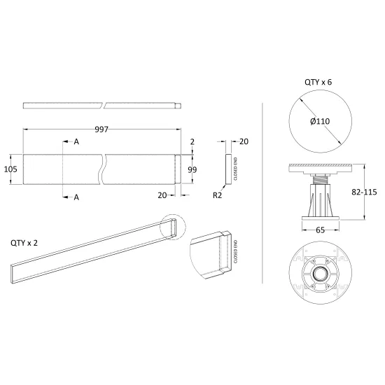 Hudson Reed 1000mm Square & Rectangular Trays Leg Set With Plinth, Legs, Clips & Screws