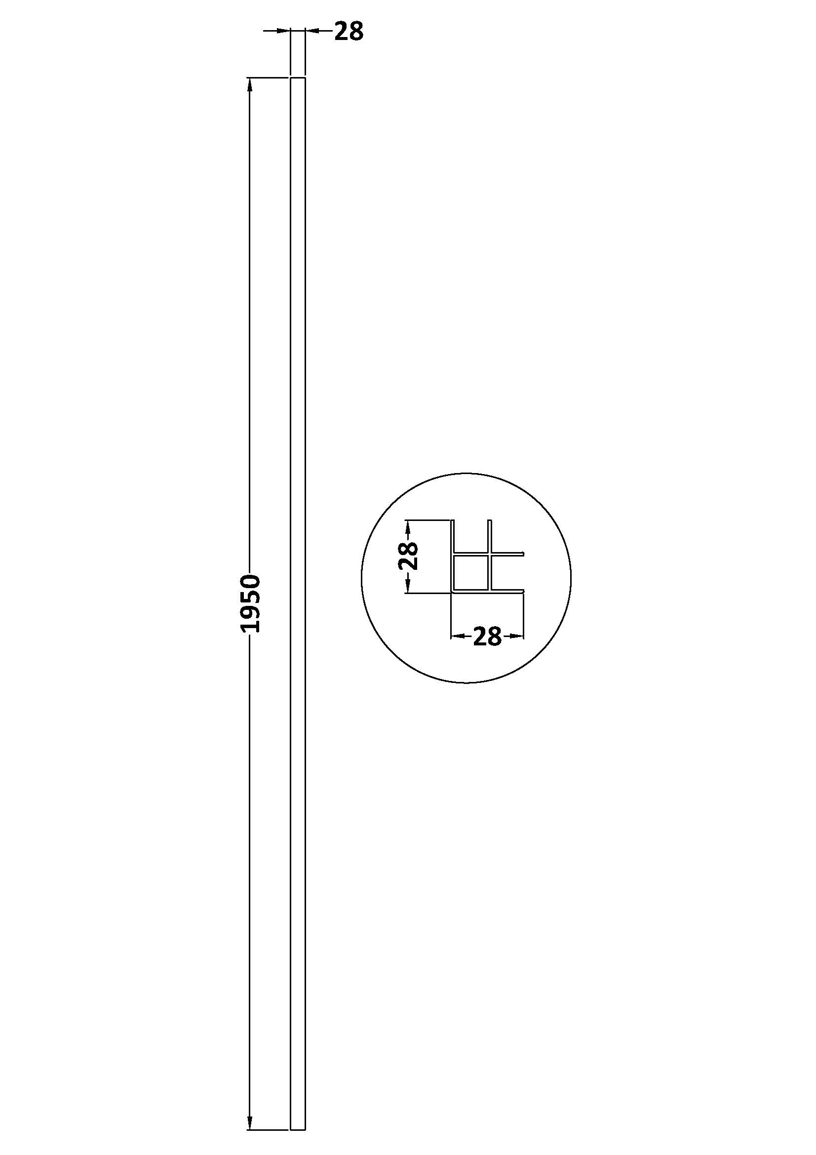 Matt black wetroom return screen L profile.