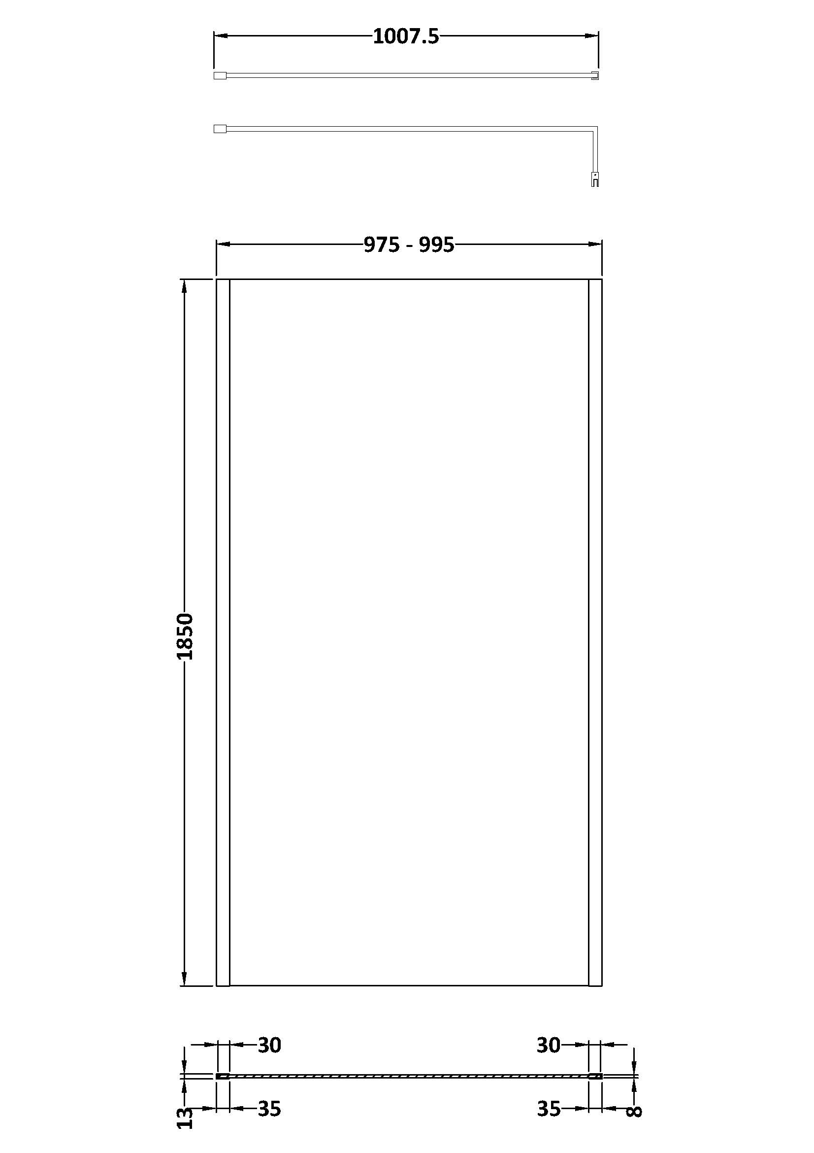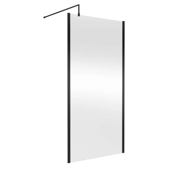 nuie 1000mm Outer Framed Wetroom Screen with Support Bar - 8mm Glass - Matt Black