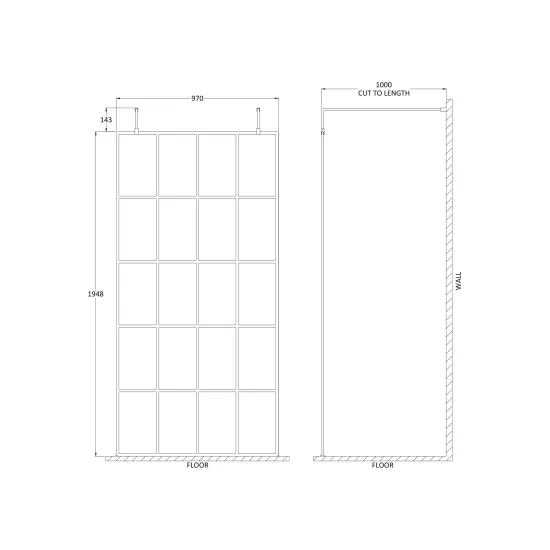 1000x1950mm Frame Matrix Freestanding Wetroom Screen