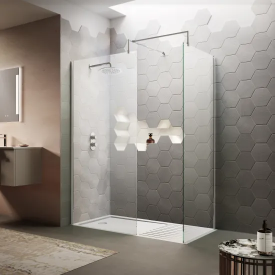 Hudson Reed 1100mm Wetroom Screen & Support Bar - 8mm Glass - Polished Chrome