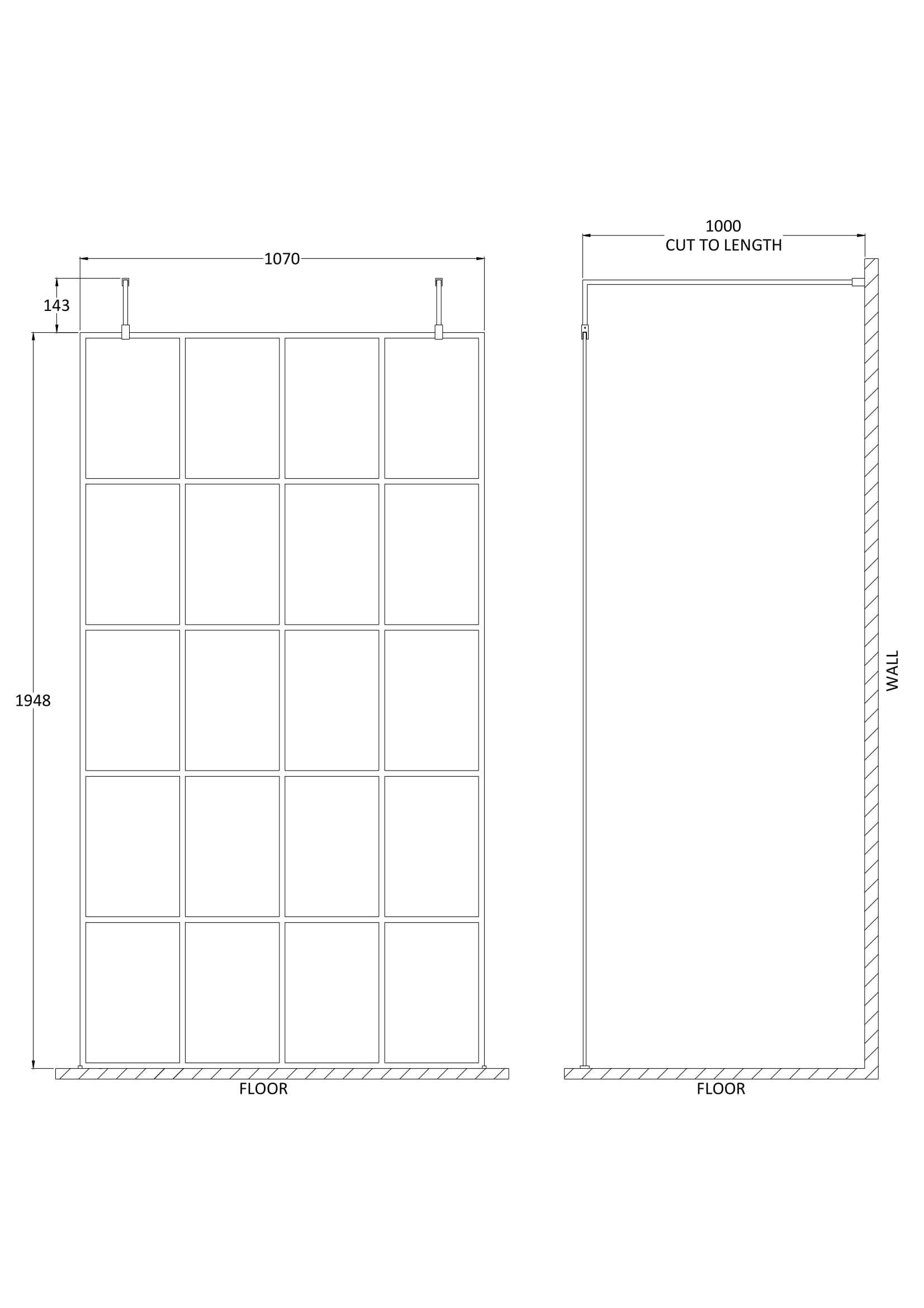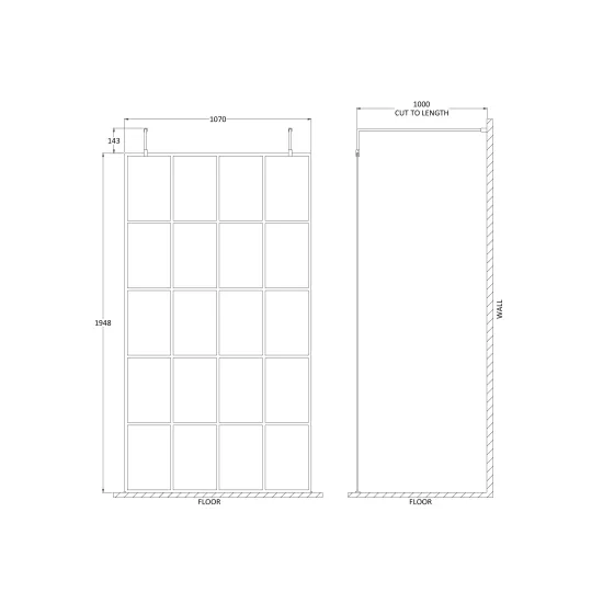 1100x1950mm Frame Matrix Freestanding Wetroom Screen