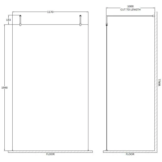 1200 Wetroom Screen with Arms and H Feet