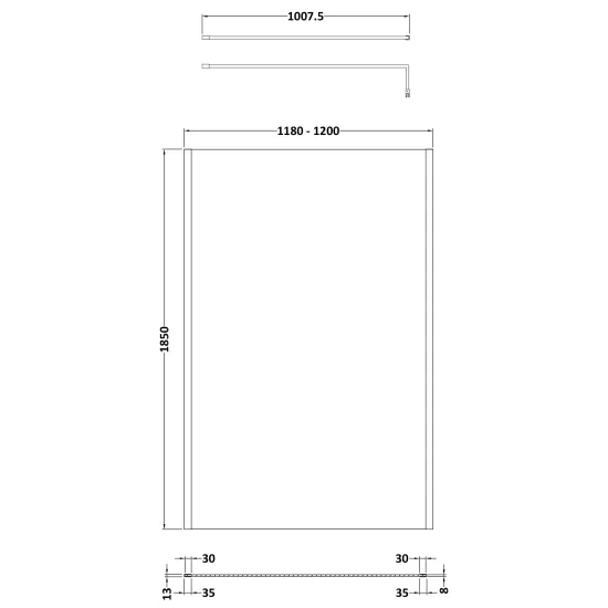 nuie 1200mm Wetroom Screen Outer Frame 1850x8mm - Brushed Pewter