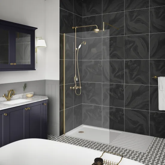 Hudson Reed 1200mm Wetroom Screen With Brass Support Bar - 8mm Glass - Brushed Brass
