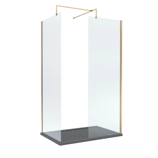 Nuie 1200mm x 700mm Brushed Brass Walk-In Wetroom Screen Set With Tray