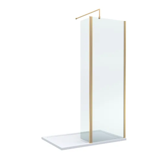 Nuie 1200mm x 700mm Brushed Brass Wetroom Screen with Return Screen & Tray
