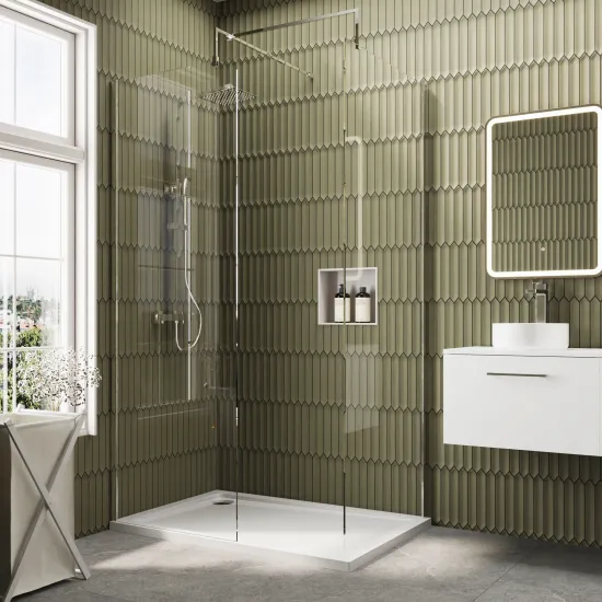 Supplied with: Wetroom Screen - 700 x 1950mm, Wetroom Screen - 800 x 1950mm, Rectangular Shower Tray - 1200 x 800mm.