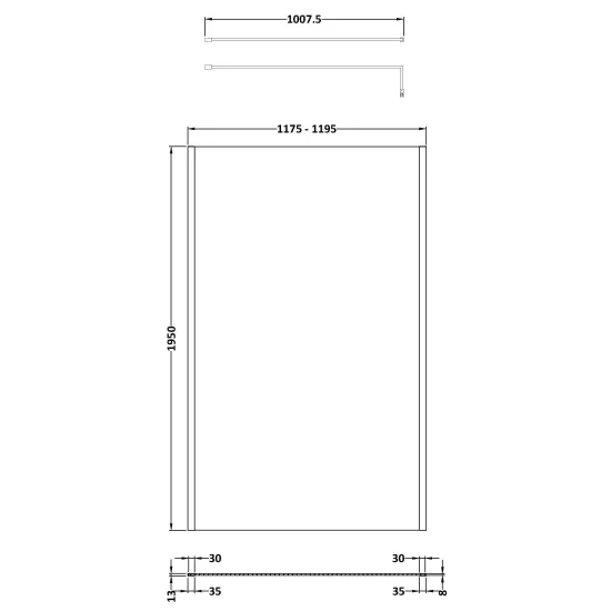 1200x1950mm Outer Frame Wetroom Screen
