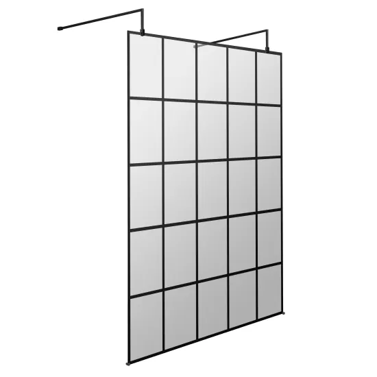 Hudson Reed 1400mm Frame Screen with Arms and Feet - 8mm Glass - Matt Black