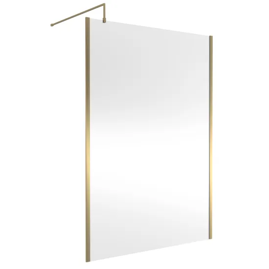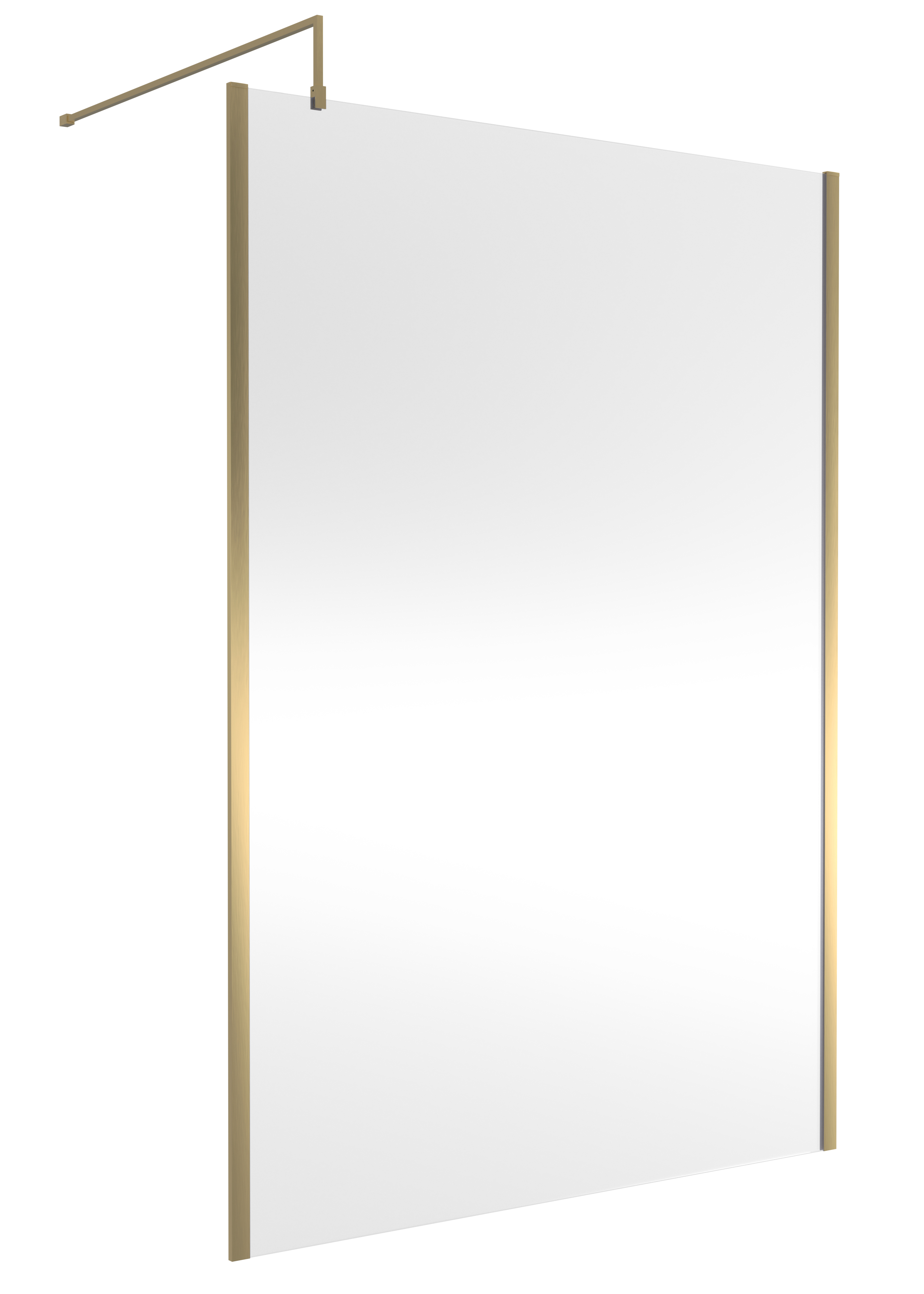 Nuie 1400mm Brushed Brass Wetroom Screen With Support Bar and Profile Kit