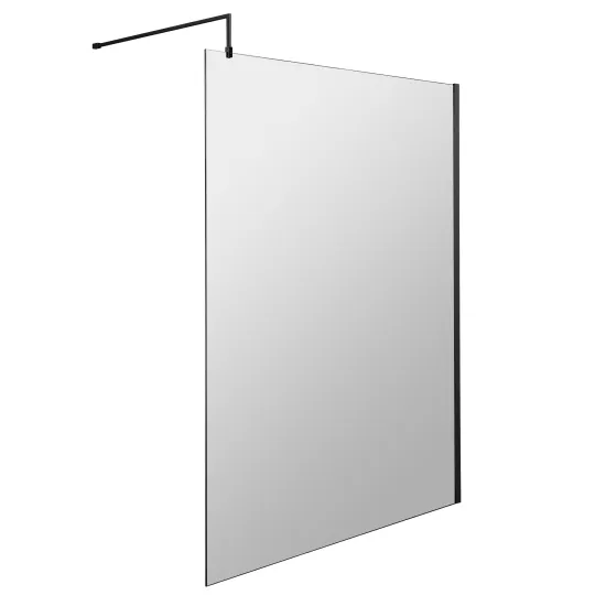 Hudson Reed 1400mm Wetroom Screen With Black Support Bar - 8mm Glass - Matt Black