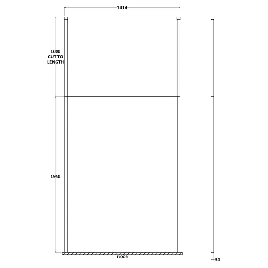 Hudson Reed 1400mm Wetroom Screen with Ceiling Posts - 8mm Glass - Matt Black
