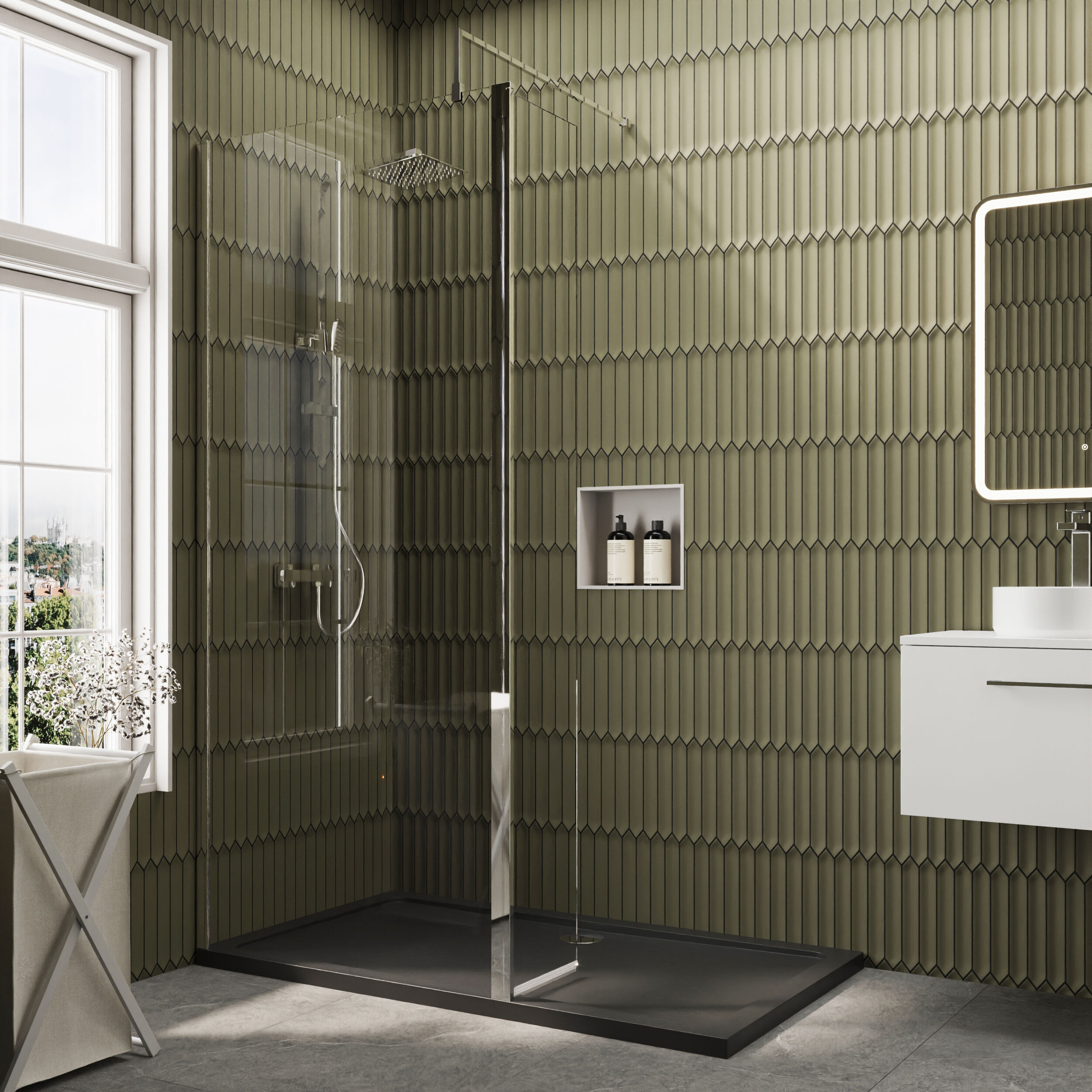 Nuie 1400mm x 700mm Chrome Framed Wetroom Screen with Return Screen With Slate Grey Tray