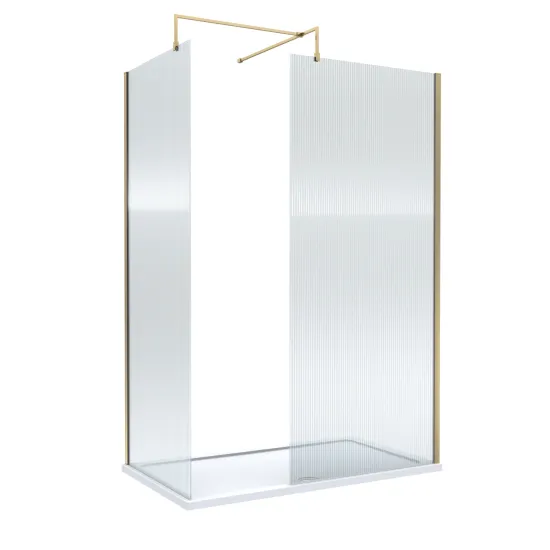 Nuie 1400mm x 800mm Brushed Brass Frameless Wetroom Screen With Tray