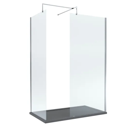 Nuie 1400mm x 900mm Chrome Frameless Wetroom Screen Set With Slate Grey Tray
