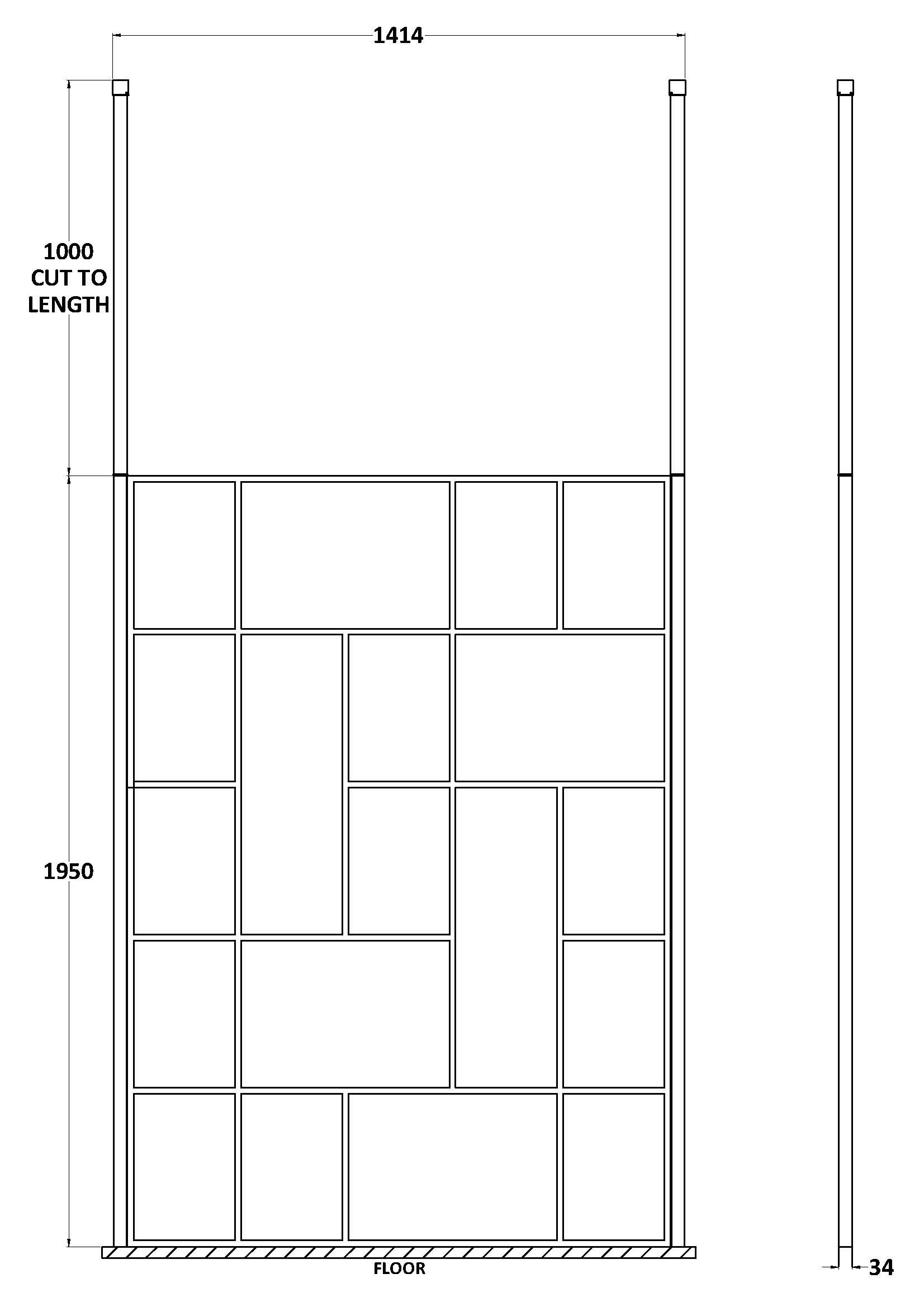 1400x1950mm Abstract Wetroom Screen with Ceiling Posts - Matt Black