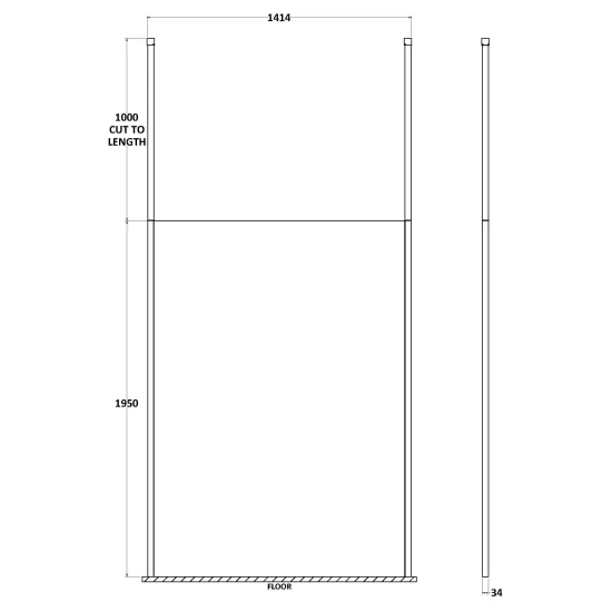 1400x1950mm Wetroom Screen with Ceiling Posts