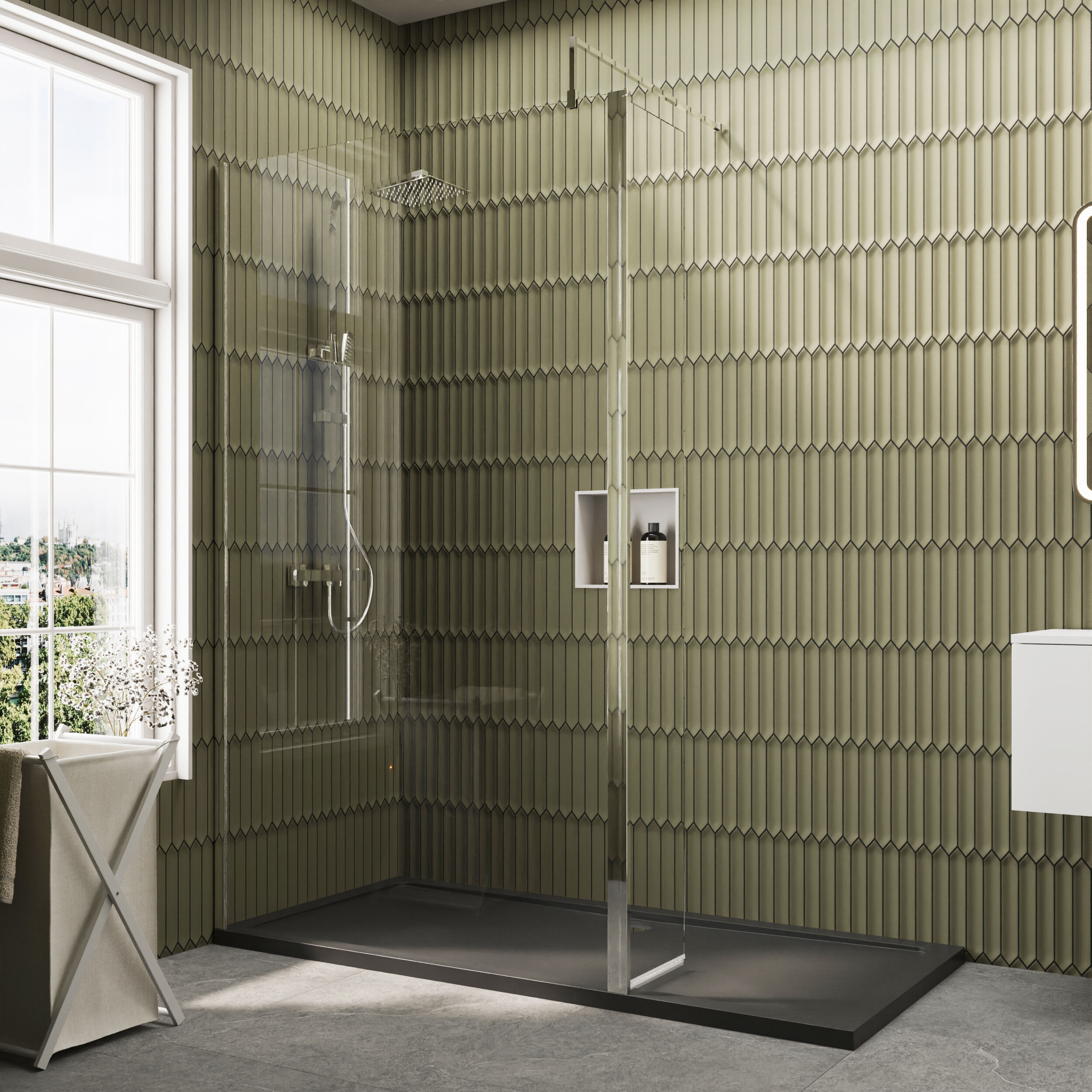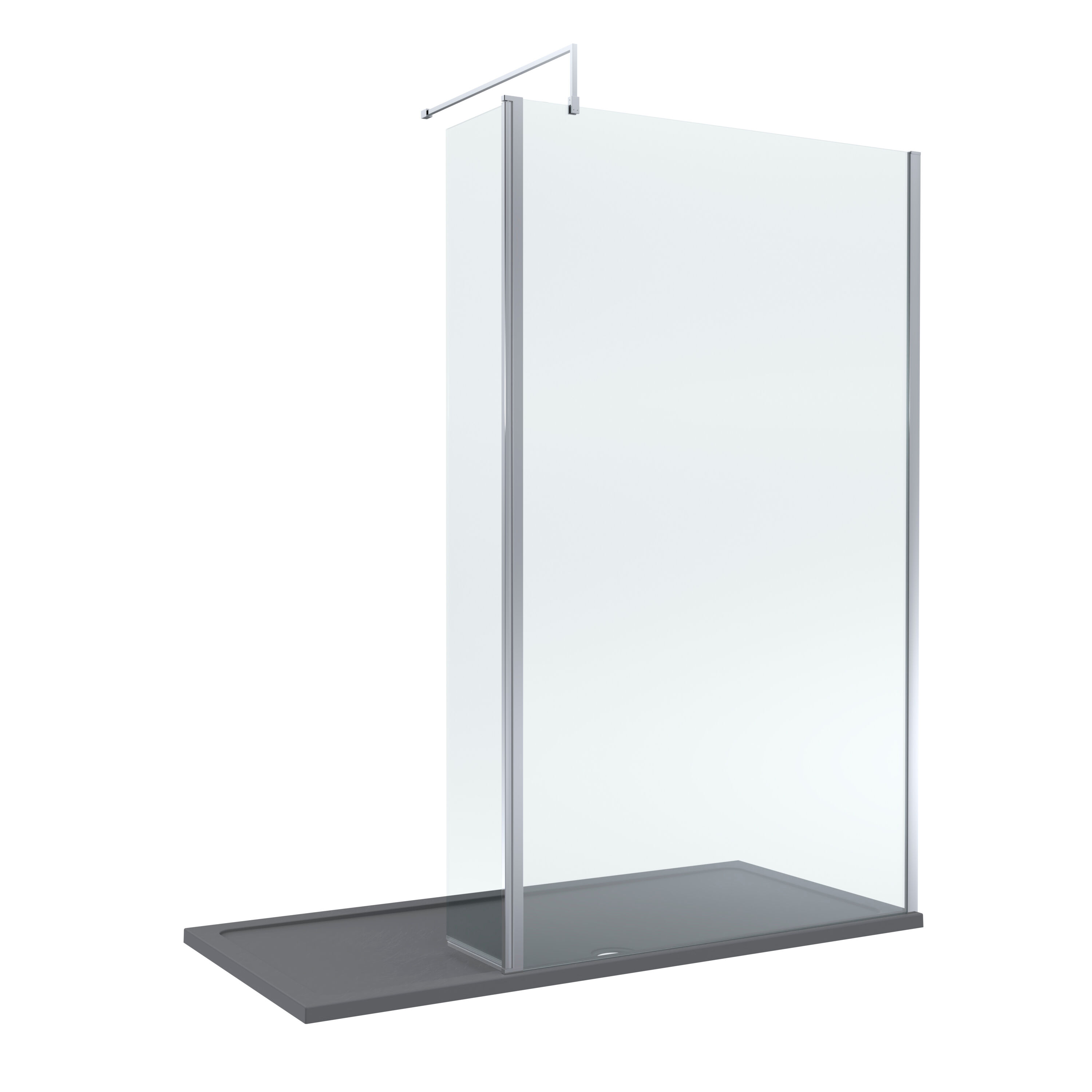 Nuie 1700mm x 900mm Chrome Wetroom Screen with Return Screen With Slate Grey Tray