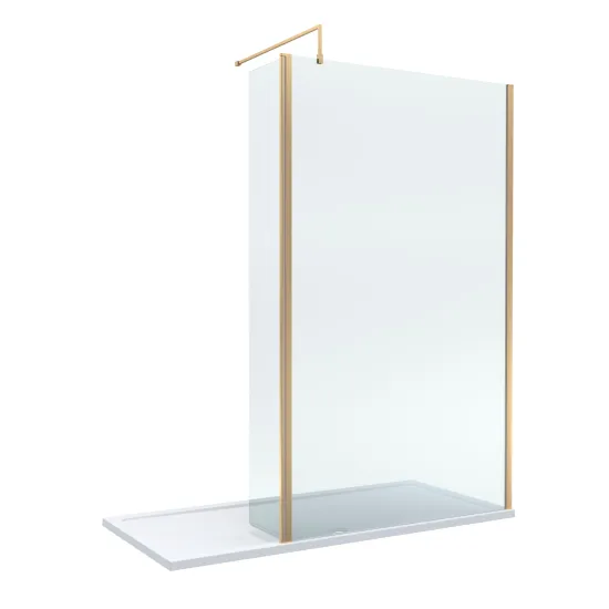 Nuie 1700mm x 900mm Brushed Brass Wetroom Screen with Return Screen With Tray