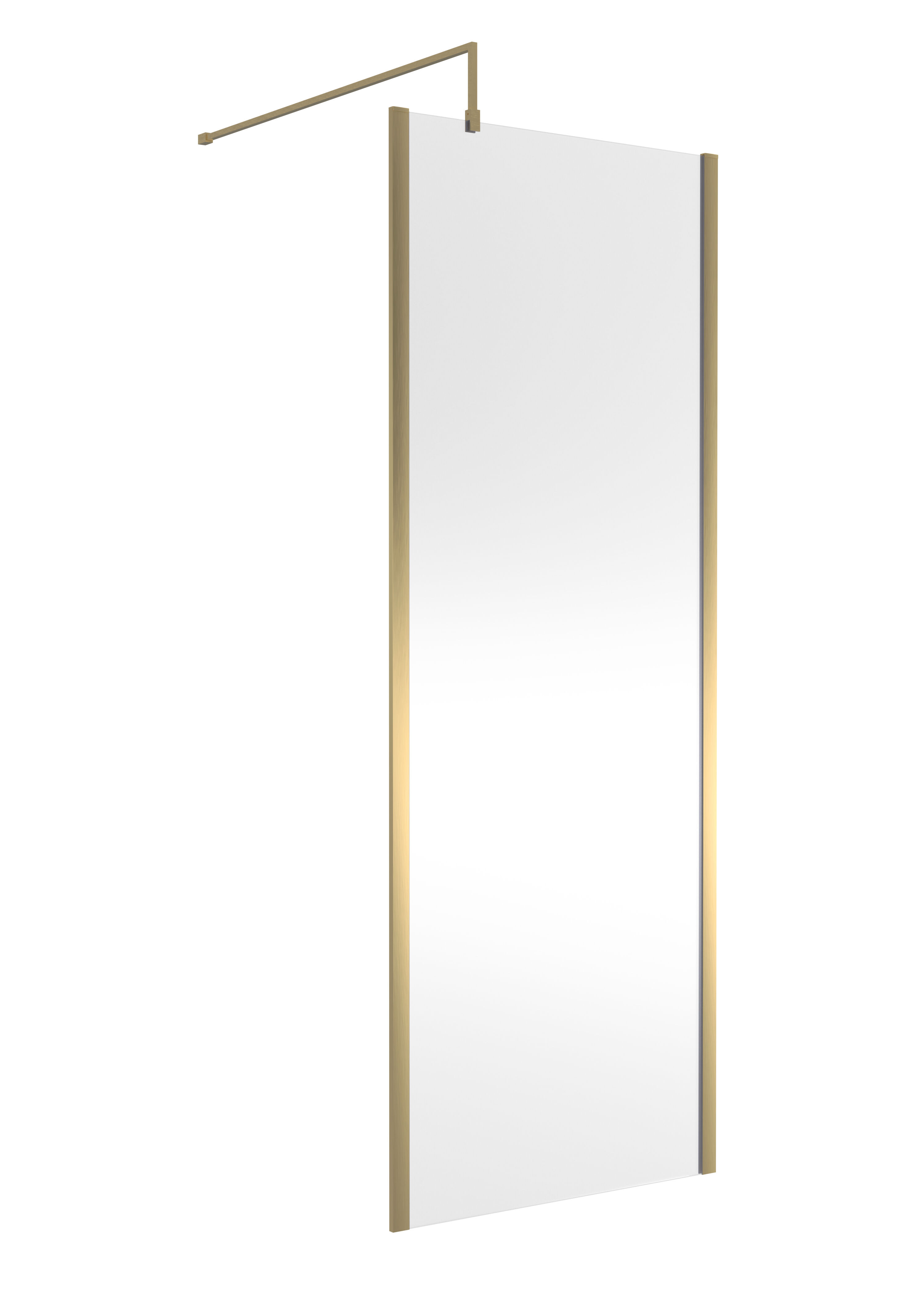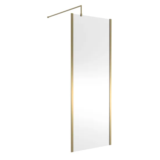 Nuie 760mm Brushed Brass Semi-Frameless Wetroom Screen With Support Bar and Profile Kit